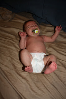 March 6: I guess Kellcyn Brooke wants to be like her big sister...We're officially making the switch to soy-based formula for her. She was on the gentle and doing okay, but lately she's been spitting up more frequently and acting like she's got a tummy ache. We started soy on Sunday, and she's doing much, much better with very little spitting up, not acting like her tummy hurts, and she seems to drink the soy much better. Hopefully this doesn't mean that her "milk sensitivity" is going to be worse than Em's because Em's didn't surface until we started giving her actual cow's milk....